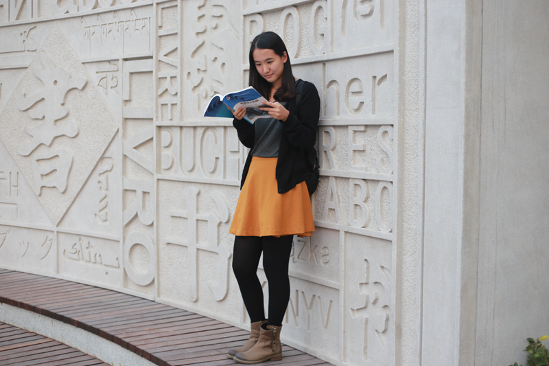 答:書墻上面的眾多“書”字,靈感來源學校蓬勃發展的留學生教育,以及在校生生源結構及民族屬性的豐富多樣。規劃處前后收集選取了42種中外文字,除了耳熟能詳的英、日、俄、法、西班牙、葡萄牙等文字,還有具有我校留學生國籍特點的愛爾蘭、芬蘭、瑞典、意大利、納魯巴、塞索托等國家及民族的文字,也有我國壯族、維族、蒙古族、藏族、朝鮮族等少數民族的“書”字。此外通過選取名家臨帖的楷、草、行、大小篆等書法作品,體現民族傳統文化的博大精深。