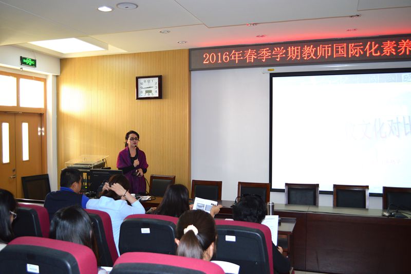 此次培訓的首講人是外國語學院英語系主任張艷華副教授。她從中西文化禮儀對比的角度進行講解,并同老師們分享了自己對“國際化”概念的體會。其生動活潑、深入淺出的闡述給教師們以深刻啟發(fā)。