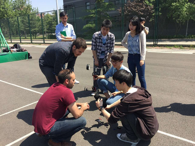 隨后,leadfinger隊(duì)、我校“夢(mèng)之隊(duì)”和備戰(zhàn)今年FE賽事的2支車隊(duì)在生活區(qū)籃球場(chǎng)切磋技藝。4輛賽車在場(chǎng)上不斷試跑、調(diào)整、比試高低。美國(guó)朋友參觀了“夢(mèng)之隊(duì)”以及新車隊(duì)在學(xué)生創(chuàng)業(yè)園的工作室。今年準(zhǔn)備參賽的隊(duì)員張鴻志表示,交流活動(dòng)提供了難得、寶貴的學(xué)習(xí)機(jī)會(huì),也增進(jìn)了BTBU與ACCD的友誼,讓同學(xué)們能以車會(huì)友,切磋共進(jìn)。