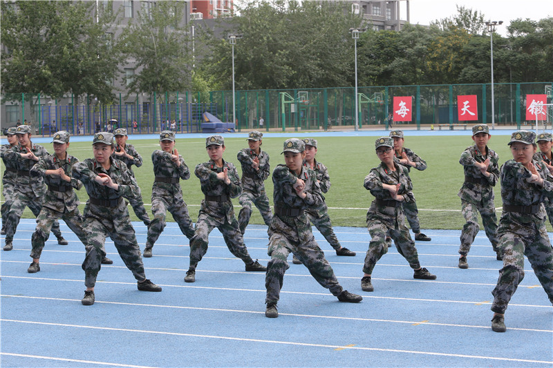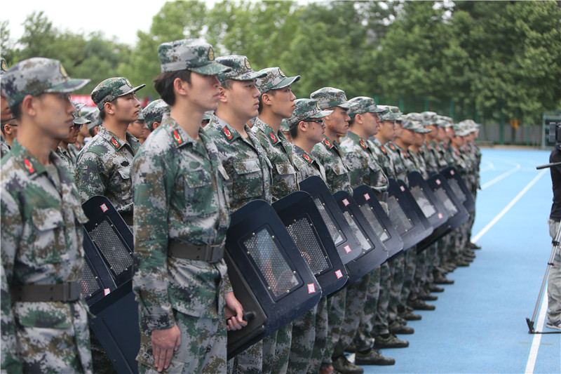我校民兵應急連是今年4月由西城區武裝部發起,由我校退伍學生為骨干組建的西城區第一支大學生民兵隊伍。經過學校武裝部的宣傳發動,僅3天時間就有良鄉校區132名大一和大二的學生志愿報名。最終,連隊選拔出80名男隊員和25名女隊員,并由3名學校老師擔任連長、指導員和副連長職務。應急連下設3個男生排和1個女生排,班、排長全部由16名退伍老兵擔任。在西城武裝部的指導及學校武裝部的具體組織下,應急連利用每天早上6點至8點的時間進行了12天的校內訓練,利用2個周末時間進行了4天的軍訓基地集中訓練。全體隊員完成了政治教育、隊列基礎、實彈射擊、內務整理等內容的訓練,男隊員完成了警棍盾牌操科目訓練,女隊員完成了擒敵拳科目訓練。