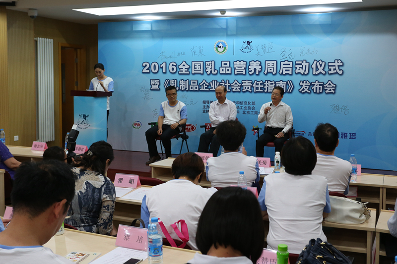 活動期間發布了《乳制品行業社會責任指南》,這是我國食品行業首個社會責任指南。現場11家乳制品企業表示,將始終將消費者的營養健康作為企業行動的信仰,憑借自身在社會責任工作方面的經驗,用社會責任指引的方式,使消費者品嘗到安全營養的乳制品。