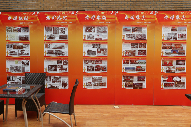 為紀念中國共產(chǎn)黨成立九十五周年和紅軍長征勝利八十周年,扎實推進學校“兩學一做”學習教育,6月20日,黨委宣傳部精心制作的《光輝歷程——紀念中國共產(chǎn)黨成立九十五周年》、《楷模——優(yōu)秀共產(chǎn)黨員圖片精選》和《紅軍不怕遠征難——紀念紅軍長征勝利八十周年》三個主題圖片展在阜成路校區(qū)圖書館一層大廳展出。