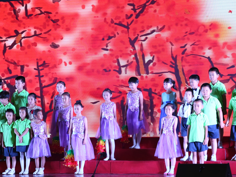 本次匯演在附小鼓隊鏗鏘有力的鼓聲中拉開了序幕。匯演分為六個板塊,分別以春、夏、秋、冬、愛、樂為主題,每個主題都精選了幾首代表性詩詞。或誦讀,或歌唱,或舞蹈,或表演,每個班的演出各具特色,各有精彩。孩子們稚嫩的童音和生動活潑的表演將四季的美好帶到觀眾眼前。其中,一(3)班表演的“秋之思”別出心裁,分別以古箏、流行音樂配古詩,將馬致遠、杜牧詩中蕭瑟的秋景化作徐徐爽朗的秋風拂面而過。而一(5)班的“愛之濃”更是讓人眼前一亮,古詩《紅豆》誦讀與沙畫表演的結合,凸顯了王維“詩中有畫、畫中有詩”的意趣;國學經典《三字經》的誦讀加表演,演繹出了動感時尚的節奏。最后,一(6)班帶來的壓軸表演“樂之源”更是活躍了整場的氣氛。舞臺上,孩子們有的扮作慈祥的老者、有的本色出演天真可愛的孩童,以生動的情景劇形式將古詩中的田園之樂表現得惟妙惟肖,活靈活現,讓人不禁對寧靜閑適田園生活心生向往。精彩的演出贏得了臺下觀眾一陣又一陣的掌聲。