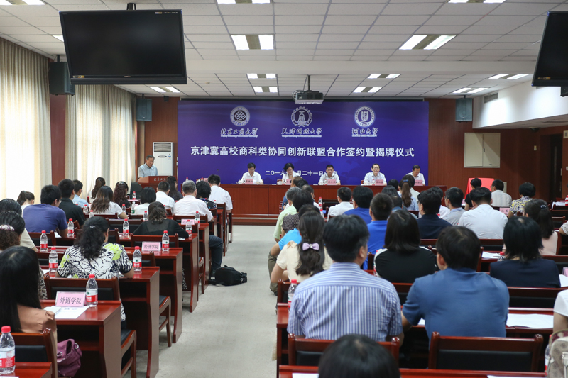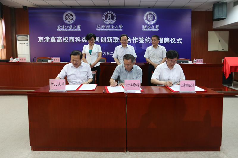 6月21日,我校與天津財(cái)經(jīng)大學(xué)、河北大學(xué)三所高校合作成立“京津冀高校商科類協(xié)同創(chuàng)新聯(lián)盟”,在商科教育的學(xué)科建設(shè)、人才培養(yǎng)、科學(xué)研究與服務(wù)京津冀發(fā)展等方面建立合作機(jī)制。北京市教工委副書記、河北省教育廳黨組副書記、副廳長韓俊蘭,天津市教育委員會副主任韓金玉,我校黨委書記譚向勇、天津財(cái)經(jīng)大學(xué)校長李維安、河北大學(xué)黨委副書記王余丁出席活動。我校部分職能部門領(lǐng)導(dǎo)、相關(guān)學(xué)院領(lǐng)導(dǎo)及教師參加成立大會。活動由副校長謝志華主持。