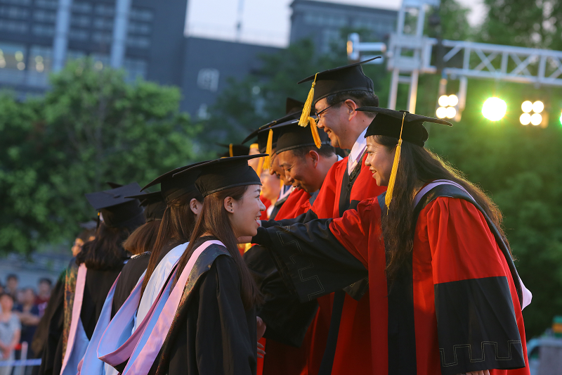 學位授予儀式莊嚴而肅穆。在感人的畢業歌曲中,畢業生們依次上臺,主席臺的領導和嘉賓為他們頒發學位證書并扶正流蘇,并給予了真誠的祝福。學士帽上的流蘇從右邊撥到了左邊,是一種榮耀,更是一種鞭策。一臺臺相機爭相記錄著畢業生們最絢爛的笑容,最動人的瞬間。