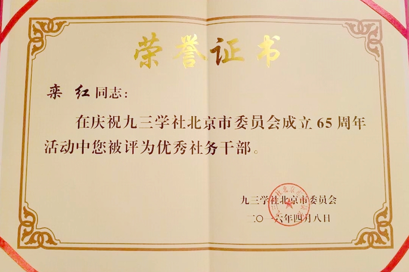 欒紅副教授任九三學社北京市婦女委員會委員、北京九三學社第四綜合支社宣傳委員。多年來,她一直從事人才培養、科學研究的一線工作,利用專業優勢服務社會,積極參政議政,認真履行職責,為學校的發展積極建言獻策。