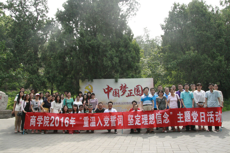 為紀(jì)念中國(guó)共產(chǎn)黨成立95周年,深入開(kāi)展“兩學(xué)一做”學(xué)習(xí)教育,進(jìn)一步增強(qiáng)黨組織的凝聚力和戰(zhàn)斗力,商學(xué)院黨委于6月29日組織教師黨員與學(xué)生預(yù)備黨員赴全國(guó)愛(ài)國(guó)主義教育基地香山公園雙清別墅開(kāi)展“重溫入黨誓詞,堅(jiān)定理想信念”主題黨日活動(dòng)。
