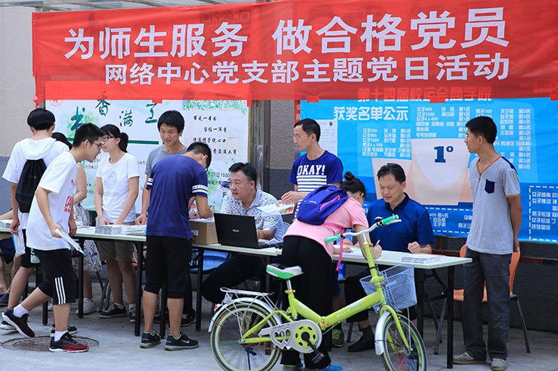 網絡中心黨支部于6月29日、6月30日和7月1日分別在良鄉校區、阜成路西校區和阜成路東校區開展了以“為師生服務 做合格黨員”為主題的義務咨詢服務黨日活動,現場傾聽師生的意見、了解師生的需求、解決師生的問題。網絡中心黨員、積極分子、業務骨干等17人參加了咨詢服務活動。