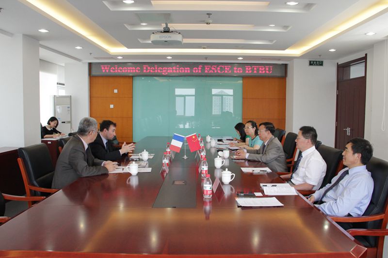 法國高等外貿學院中法項目部主任李建樂,我校國際交流與合作處處長劉影、科技處處長何明珂、國際交流與合作處副處長賀冬萌參加了此次會見。