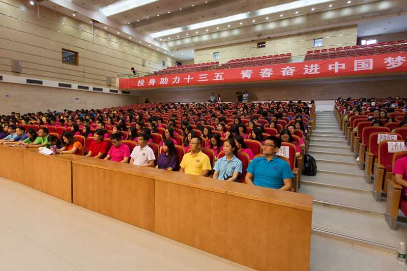 在國歌聲中,出征儀式拉開帷幕。團委書記王海偉介紹了我校2016年暑期社會實踐基本情況。今年我校開展以“青年服務國家——投身助力十三五,青春奮進中國夢”為主題,以理論學習、政策宣講、基層建設、走訪調研、志愿服務為主要形式的暑期社會實踐。本次實踐分為集中實踐和分散實踐。集中實踐包括“十鄉百村千人行”暑期社會實踐團、房山區暑期高校大學生社會實踐團、“社區青年匯新青年學堂”成人高考培訓實踐團、思想教育主題實踐團、暑期大學生志愿服務實踐團,赴英國牛津大學學生培訓實踐團以及服務騰沖暑期聯合社會實踐團等七個團隊。其中青年志愿者協會敬老愛老志愿服務團和服務騰沖暑期聯合社會實踐團還入選了北京市暑期社會實踐百強團隊。王海偉表示今年是十三五規劃的開局之年,希望將社會實踐打造成第二課堂的育人品牌,引導幫助更多學生在實踐中成長。