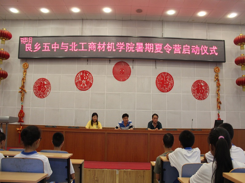 下午2點,在良鄉五中階梯教室舉行了夏令營的開營儀式。儀式上,良鄉五中德育副校長許校長對實踐分團表示了誠摯的歡迎、感謝和支持,并指出“十村百鄉千人行”活動不僅能夠讓學生們感受社會發展、人文發展,也能幫助他們對未來有一定的規劃。許校長對實踐團的學生提出了帶領良鄉五中同學腳踏實地,注重實踐,開闊眼界的希望,同時也對同學們提出了要遵守紀律、注意安全的要求。