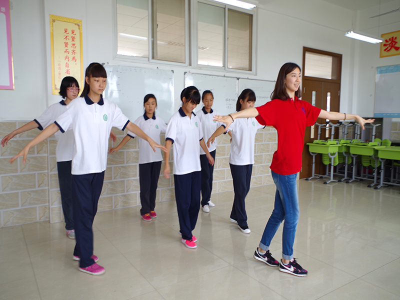 與此同時支教活動是進行的越來越順利。神秘又有趣的數學課通過一些神奇的數學理論,穿插引用一些實際的應用問題,使同學們對數學產生了濃厚的興趣,也極大地激發了同學們的求知欲。只能在室內教學的體育課由于老師的趣味安排也得到了同學們的積極配合。體育課上,傳球的游戲調動了大家的積極性,同時也考驗了同學們的團隊配合能力。形體課上,老師親自示范的基本的舞蹈動作也吸引大家躍躍欲試,老師也對她們進行了耐心的指導。美術課上,老師帶著同學們學習了簡筆畫,同學們對此產生了濃厚的興趣,并且在老師的帶領下 一步步用簡單的線條描繪出形象的圖形。對于繪畫比較困難的同學,老師進行了耐心的講解,并且親自為同學示范。