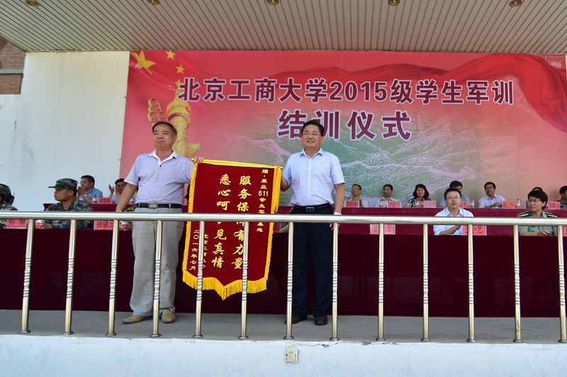 黨委副書記張德玉代表學校向承訓部隊和北京康莊611軍訓基地分別贈送錦旗,表達誠摯謝意。
