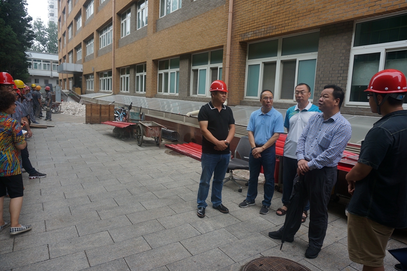 副校長鄭文紅和工會主席邱曉平共同詢問了在崗一線人員在假期的生活狀況,代表學校和工會看望大家,叮囑大家務必在做好保障工作的同時,做好自身的防暑降溫工作,感謝不同崗位的人員為保障校園各項基礎運行工作做出的貢獻。在施工現場他們了解了工程進展情況,要求大家盡量做到按進度、保質量、出效益。他們表示假期工作很辛苦,要注意身體,希望各部門給予更多的關心,確保校園的和諧安全穩定。