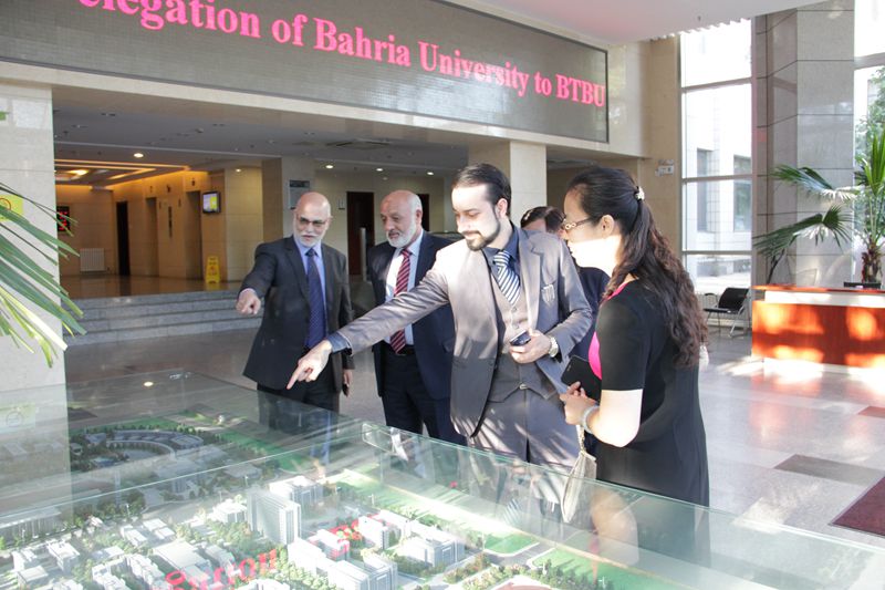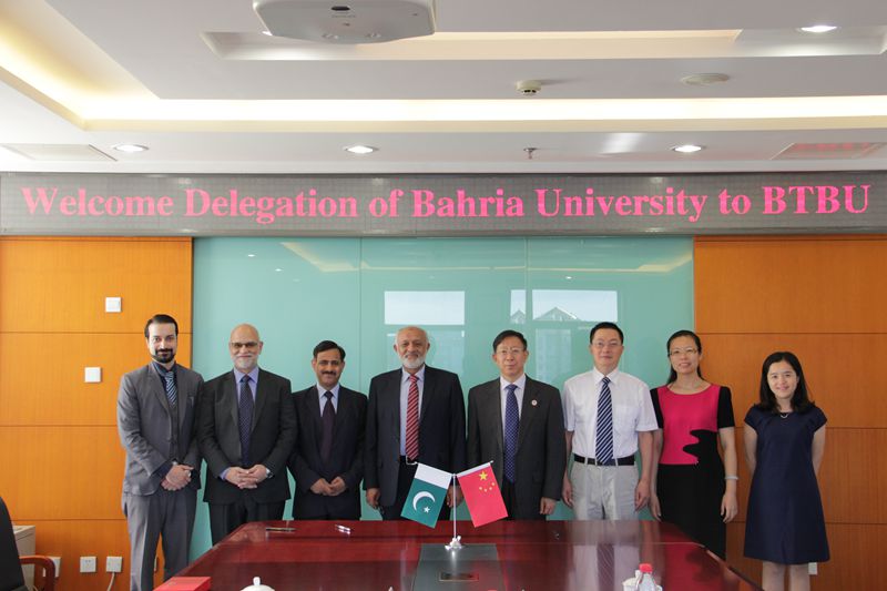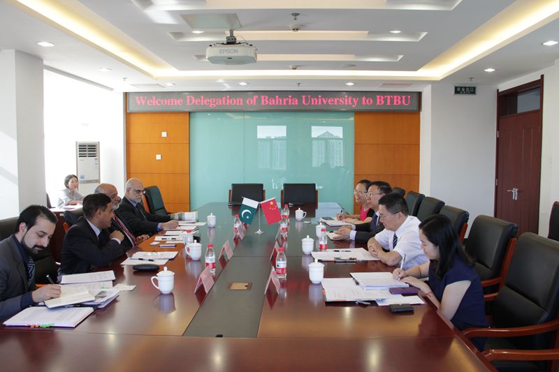 孫寶國校長對坦維爾·菲茲校長一行訪問我校表示歡迎,他說巴基斯坦和中國的友誼源遠流長,兩國間不但建立起了全天候的戰略合作伙伴關系,同時也是一帶一路戰略的重要合作伙伴。在中巴兩國全面深化戰略合作的大格局下,我校與巴基斯坦巴利亞大學的合作得到了雙方上級部門和巴基斯坦駐華大使館的大力支持,學校積極開展國際合作與交流,特別是將發展外國留學生教育作為國際合作的重中之重,巴基斯坦作為我校主要的外國留學生生源地之一,我校積極深入開展與巴利亞大學的全面合作與交流,將成立北京工商大學巴基斯坦研究中心,與巴基斯坦高校在學生聯合培養、教師互訪交流和聯合科研合作等方面開展相關項目,期待雙方能夠在共同感興趣的優勢學科和領域開展深入的合作和交流。