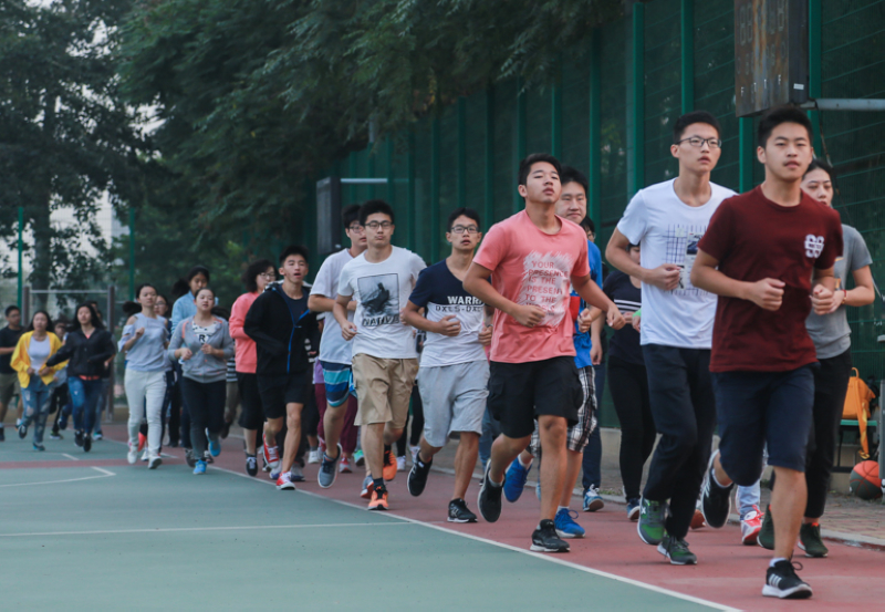“躍動生命,在陽光下追逐燦爛的夢想”、“迎接朝陽,奔向夢想,書聲瑯瑯,生命綻放”......學生活動中心、柏林藍操場等地到處懸掛著為同學們加油鼓勁的條幅。走進晨練場地,記者看到同學們踏著整齊的步伐,喊著響亮的口號,精神抖擻、熱情高漲,運動中的同學們已然成為校園內一道亮麗的風景線。