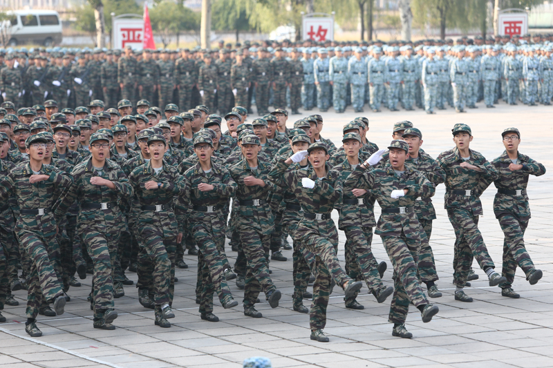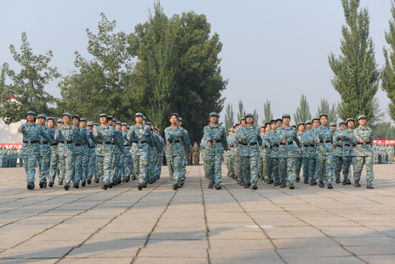 上午8時結業典禮正式拉開序幕。在八一軍旗的率領下,踏著《中國人民解放軍軍歌》的節拍,29個方陣邁著整齊劃一的步伐依次通過觀禮臺接受檢閱。他們精神抖擻,聲音洪亮,用挺拔的軍姿、整齊的軍容、昂揚的口號向眾人展現了莘莘學子奮發拼搏的風采和勇往直前的精神。
