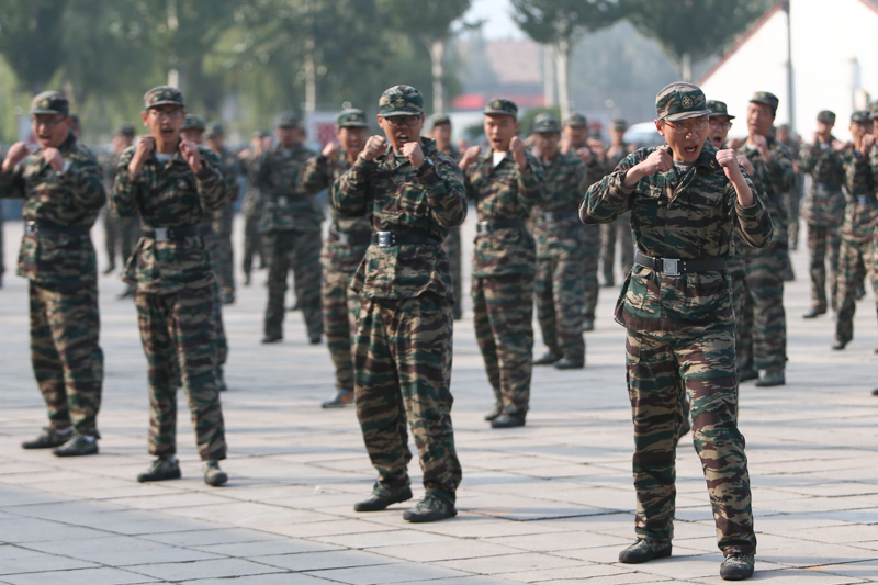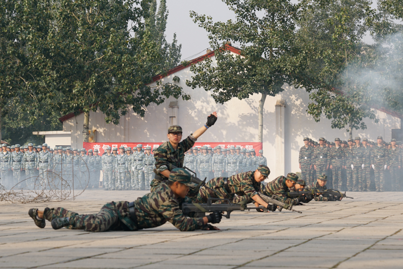 隨后,軍訓成員在軍訓成果匯報中分別進行了單個軍人停止間隊列動作、分隊隊列動作、班進攻與戰傷救護、拉歌對抗賽、腰帶擒敵拳、擒敵拳表演。他們隊列整齊劃一,動作剛勁嫻熟,聲音鏗鏘有力,展現了學子們良好的精神風貌和奮勇爭先、團結凝聚的軍人氣質,出色的表現贏得了在場領導老師的陣陣掌聲與一致好評。
