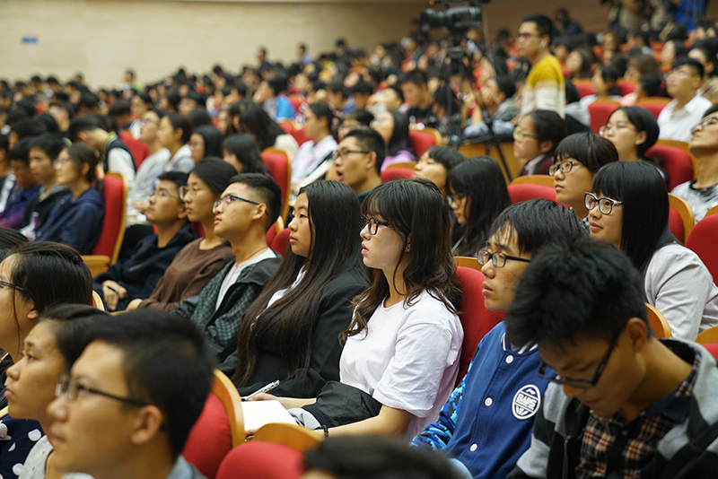 在互動環節,同學們就“如何保持對科學的敬畏之心?”“大學中如何處理好學習、工作和興趣之間的關系?”“何為遠大的理想?”“如何看待榜樣的力量?”等問題向孫校長積極提問。孫校長結合自己大學生活和從教多年的經歷為同學們一一進行了解答,樸實的話語、精彩而細致的回答得到了同學們的陣陣掌聲。講座結束后,同學們還圍在孫校長身邊,就自己關心的問題向孫校長請教。
