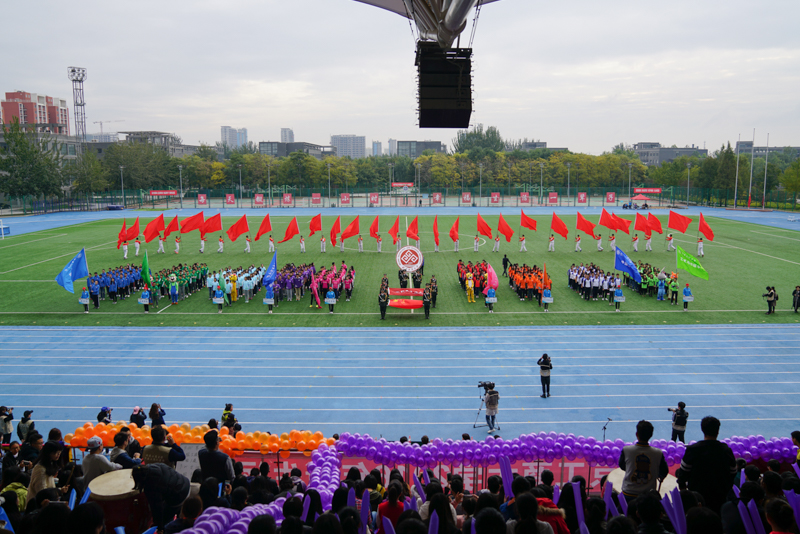 開幕式在激情澎湃的進(jìn)行曲中拉開了帷幕。由12名國(guó)旗手組成的國(guó)旗、校旗和校徽方陣走向主席臺(tái)。旗手們個(gè)個(gè)精神抖擻,意氣風(fēng)發(fā)。各學(xué)院運(yùn)動(dòng)員們身著統(tǒng)一的服裝,邁著自信的步伐,昂首挺胸,闊步走進(jìn)體育場(chǎng)。他們昂揚(yáng)的姿態(tài)將蓬勃向上、拼搏進(jìn)取、永不服輸?shù)捏w育精神傳遞給運(yùn)動(dòng)場(chǎng)中的每一個(gè)人。