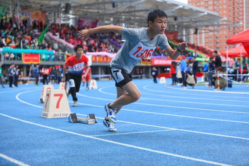 開幕式結(jié)束后,各項(xiàng)比賽即刻開始。首先進(jìn)行的是男子100米預(yù)賽。隨著“嘭!”的一聲槍響,全場(chǎng)瞬間被點(diǎn)燃。選手們飛奔而出,觀眾席各學(xué)院的吶喊聲、鑼鼓聲此起彼伏。女子100米預(yù)賽緊隨其后,運(yùn)動(dòng)員們矯健的身姿展示了巾幗不讓須眉的態(tài)度,觀眾們發(fā)出連連地掌聲與贊美聲。與此同時(shí),田賽項(xiàng)目也在進(jìn)行著精彩的比拼。女子鉛球決賽、男子跳遠(yuǎn)決賽、女子跳高決賽等,吸引著不少同學(xué)加油助威。更高,更快,更強(qiáng)的體育精神以及大學(xué)生特有的青春與活力,在運(yùn)動(dòng)場(chǎng)中得到了張揚(yáng)!