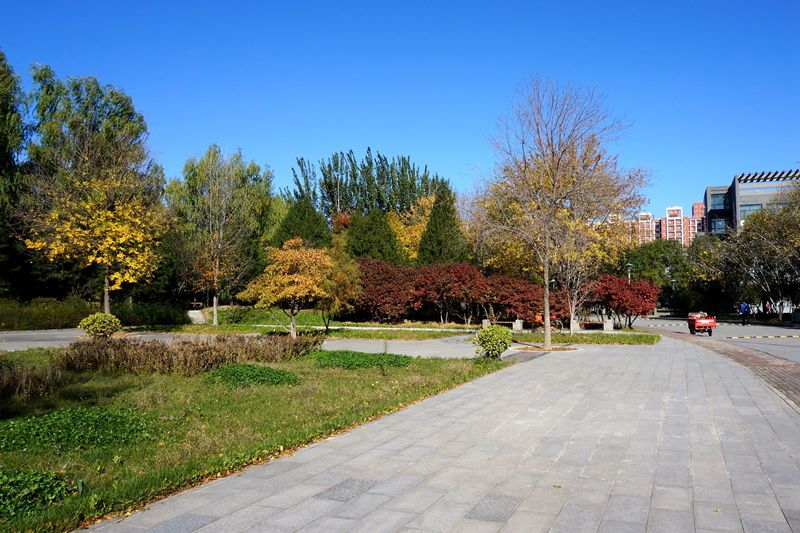 楓樹,槭樹科槭樹屬植物,多為灌木或大小喬木,是世界各國秋季風景林中重要的中層樹木,我校的楓樹主要有兩種:元寶楓和中國紅楓。元寶楓,葉呈掌狀5裂,嫩葉為紅色,秋季葉初為鵝黃色,落葉前變為黃色或紅色,主要種植于阜成路校區位于教一樓北側及東區禮堂西側,共計4棵,良鄉校區求知廣場、臨水靜思綠化林,共計91棵。中國紅楓,又名雞爪槭,葉常年紫紅色,秋葉猶為紅艷,主要種植于阜成路校區位于東區大草坪,共6棵。秋天的景致里,楓樹的美是最無法忽視的,淺黃、深紅、紫紅、金黃交織成絢爛的“楓情萬種”,引人無限遐思。