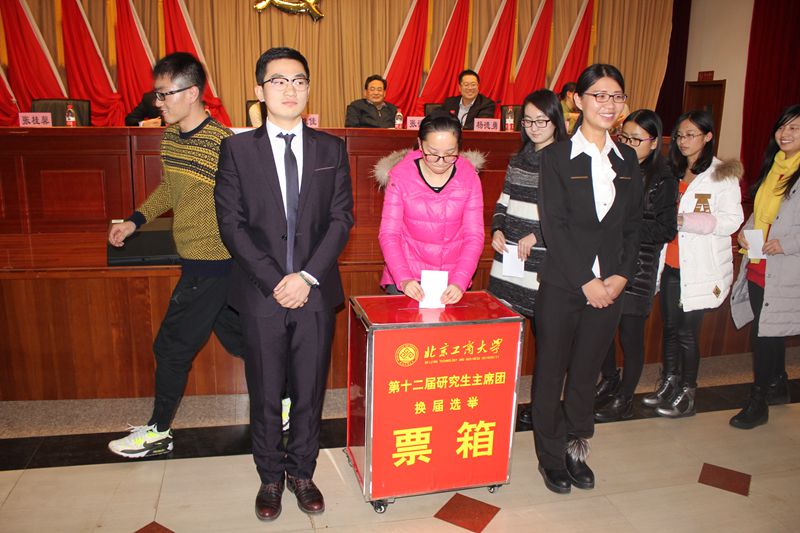 會(huì)議聽取、審議并表決了《北京工商大學(xué)第十二次研究生代表大會(huì)代表資格審查報(bào)告》、《北京工商大學(xué)第十一屆研究生會(huì)委員會(huì)工作報(bào)告》、《北京工商大學(xué)第十一屆研究生會(huì)委員會(huì)經(jīng)費(fèi)使用報(bào)告》。大會(huì)經(jīng)由第十二屆研究生會(huì)主席團(tuán)候選人競(jìng)選展示,通過(guò)代表無(wú)記名投票的方式,差額選舉產(chǎn)生了我校第十二屆研究生會(huì)主席團(tuán)成員。
