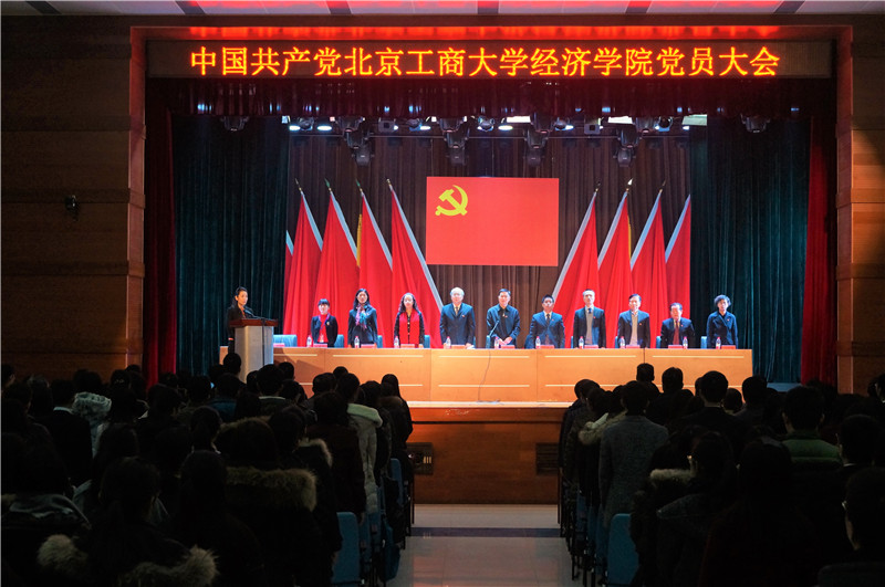 大會(huì)在莊嚴(yán)的國歌聲中拉開帷幕。學(xué)校黨委組織部部長(zhǎng)張國龍宣讀了學(xué)校黨委《關(guān)于同意中共北京工商大學(xué)經(jīng)濟(jì)學(xué)院召開黨員大會(huì)的批復(fù)》。