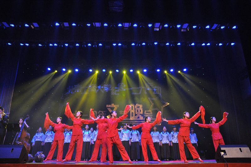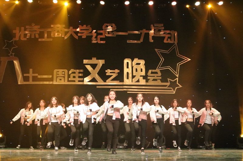 為紀(jì)念“一二·九”運(yùn)動(dòng)81周年,傳承先輩精神,展現(xiàn)工商風(fēng)采,12月7日晚,學(xué)校紀(jì)念“一二·九”運(yùn)動(dòng)81周年文藝晚會(huì)在良鄉(xiāng)校區(qū)文體館舉行。學(xué)校黨委副書(shū)記張德玉出席晚會(huì),學(xué)生處處長(zhǎng)呂素香、體育與藝術(shù)教學(xué)部主任呂良、校團(tuán)委書(shū)記王海偉、黨委宣傳部副部長(zhǎng)褚才寬、保衛(wèi)處副處長(zhǎng)楊東杰、各學(xué)院黨委(黨總支)副書(shū)記、團(tuán)總支書(shū)記及1500余名學(xué)生觀看了演出。
