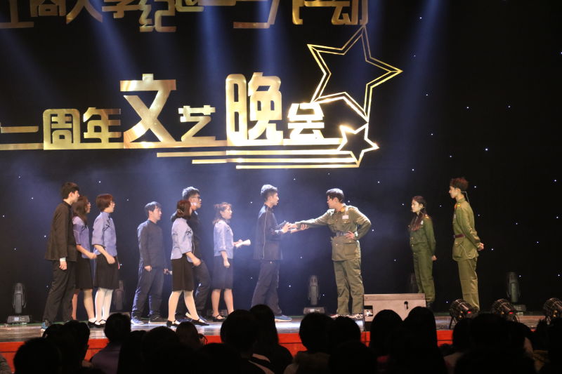 晚會(huì)在工商達(dá)人秀冠軍阿里木·買(mǎi)土送的精彩《動(dòng)聽(tīng)中東鼓》中拉開(kāi)帷幕,隨后各院節(jié)目依次登臺(tái),精彩不斷,讓現(xiàn)場(chǎng)觀眾在絢爛的燈光中,充分感受到了各學(xué)院的別樣風(fēng)采。經(jīng)濟(jì)學(xué)院舞蹈《千紅》突破了扇子舞的溫柔婉約,給人一種大氣優(yōu)美的感覺(jué);材料與機(jī)械工程學(xué)院的相聲《我最?lèi)?ài)國(guó)了》不時(shí)引起全場(chǎng)的開(kāi)懷大笑,卻又意味悠長(zhǎng);理學(xué)院的獨(dú)舞《密林傣風(fēng)》,平靜柔美,帶給大家藝術(shù)的享受;商學(xué)院的《地鐵故事》,讓大家看到啞劇藝術(shù)帶給人幽默滑稽搞笑的同時(shí),也從中學(xué)會(huì)文明乘車(chē),從我做起;計(jì)算機(jī)與信息工程學(xué)院的現(xiàn)代舞《human》,讓大家仿佛看到生命從產(chǎn)生到消逝那種永不放棄的力量;食品學(xué)院話劇《紅色的勝利》,帶領(lǐng)大家再次走入“一二·九”運(yùn)動(dòng)時(shí)學(xué)生激情澎湃,為國(guó)請(qǐng)?jiān)?;法學(xué)院《給未來(lái)的自己》感動(dòng)了全場(chǎng),不忘我們工商人,不舍我們工商情;藝術(shù)與傳媒學(xué)院勁爆街舞《藝傳TV》,熱烈奔放,讓大家不自覺(jué)地融入音樂(lè)的節(jié)拍;外國(guó)語(yǔ)學(xué)院的音樂(lè)劇《追憶紅色年華》,彰顯了男人的血性和豪邁,還有女人不輸須眉的勇敢和大氣。最后,工商達(dá)人秀彈唱類(lèi)冠軍小民謠組合受邀為大家?guī)?lái)的《張三的歌+外面的世界》,重新將熱烈激動(dòng)的觀眾帶入民謠的世界中。