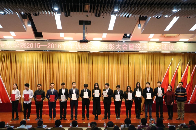 會上,學生處處長呂素香宣讀了表彰決定。大會表彰了2015—2016學年國家獎學金、國家勵志獎學金、北京市先進班集體、校先進班集體、校優秀學生獎學金、校三好學生、校優秀學生干部、學院學術藝術周優秀獎、學院“五早一晚”先進集體和個人、學院誠信教育月先進集體和個人、“藝傳之星”以及學科競賽優勝獎等獲得者。第四屆全國經濟新聞作品大賽二等獎獲得者李穎超、第十三屆學院獎金獎團隊成員曾佳、第八屆大學生廣告藝術大賽北京賽區二等獎團隊成員楊亞芮、彈力式方程賽車國內總成績第二團隊成員宋甲凱、2016時報金犢獎大陸二等獎獲得者郭春園等同學發表了他們的獲獎感言,感謝辛勤付出的老師,并和大家分享了他們參賽經歷。