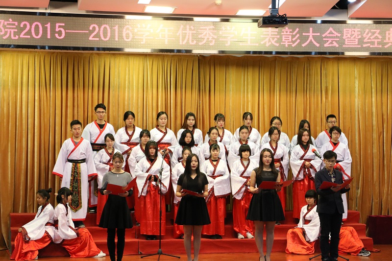 為表彰先進集體和個人,弘揚中華優秀傳統文化,12月14日,藝術與傳媒學院舉辦2015—2016學年優秀學生表彰大會暨經典詩文誦讀大賽。學生處處長呂素香,院領導羅子明、林剛、鄭子云、高麗華、宋煜、劉晶,各系主任、班主任、輔導員出席大會。北工商附屬小學校長李慶華、副校長張景輝,附屬中學工會主席張亞婷應邀參會。學院獲獎學生代表、附中附小學生與教師代表以及16級全體參賽隊伍共計400余人參加大會。