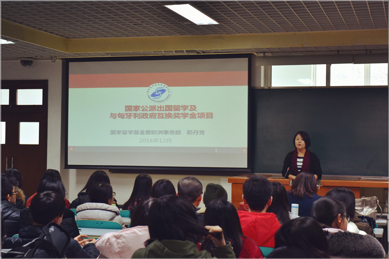 12月21日,國際交流與合作處和學生處在良鄉校區聯合舉辦2017年國家公派出國留學項目說明會,邀請國家留學基金委歐洲事務部副主任郭丹青和項目主管楊燁為我校學生做了題為“國家公派出國留學暨與匈牙利政府互換獎學金項目”的專題報告,來自我校材機學院、計信學院、經濟學院以及商學院近150名學生參加了此次說明會。說明會由國際交流與合作處副處長賀冬萌主持。