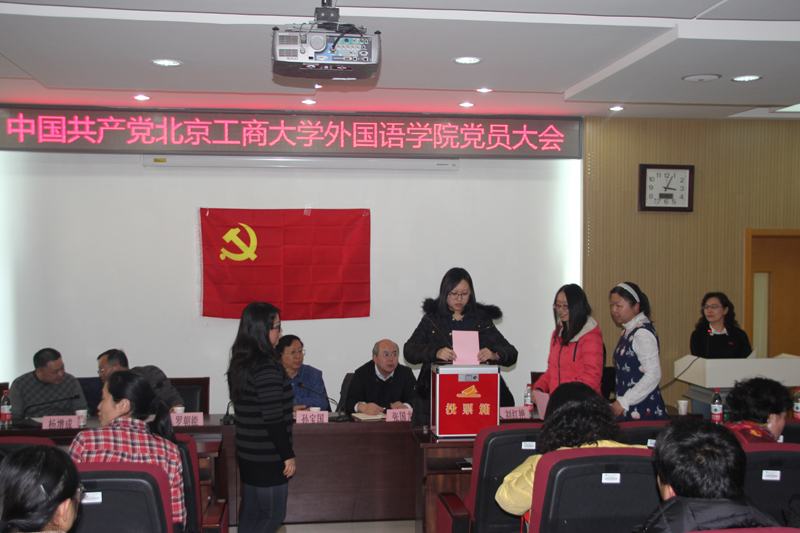 12月14日下午,中國共產黨北京工商大學外國語學院黨員大會在阜成路校區舉行,學院49名正式黨員和12名預備黨員參加大會。校長孫寶國出席會議并講話。黨委組織部部長張國龍參加會議,大會由外國語學院院長劉紅艷主持。