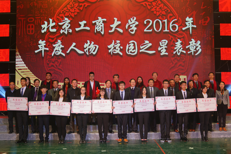 晚會現場揭曉了學校2016年度十大新聞,以視頻形式展示了學校一年來發生的重大事件和師生取得的成績。2016年學校制定了“十三五”發展規劃,一流本科和一流學科建設穩步推進,通過了《北京工商大學章程》,食品科學與工程本科專業通過國際認證,獲批主持兩項國家重點研發計劃項目,合作出版期刊《npj Science of Food》,獲批北京市示范性創業指導中心,舉辦首屆校友值年返校活動……在場師生共同慶祝新年的同時,也為學校過去一年取得的可喜成績感到自豪。