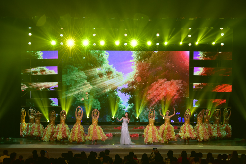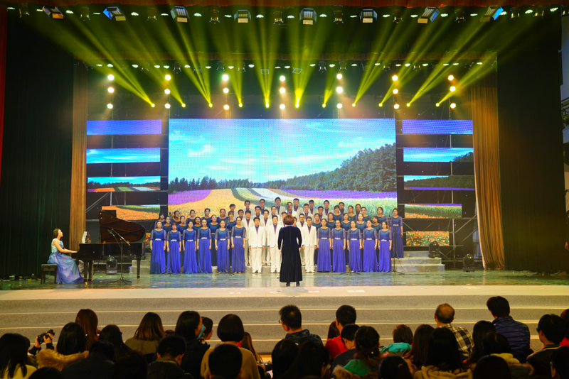 來自于中央音樂學院的楊笑涵應邀在晚會的尾聲獻上一曲《陽光路上》,歡快的歌聲表達了對未來的祝福和希望。伴隨著歌聲和翩翩舞蹈,全體演職人員登上舞臺向觀眾致意,校領導與全體演職人員合影留念。