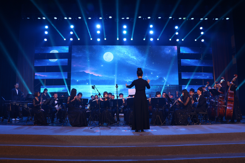 管樂團的成員為觀眾帶來了《月下低語》和《搖滾卡農》,并與合唱團成員共同為觀眾帶來《莫斯科郊外的晚上》,小提琴、鋼琴等樂器碰撞在一起,美妙的音符競相跳躍,優美的旋律在文體館上空飄蕩,使北工商的夜晚更加迷人。