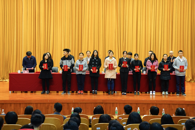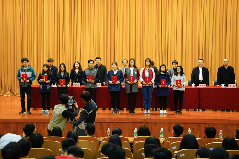 學校辦公室主任王小藝、學生處處長呂素香、理學院院長曹顯兵、外國語學院院長劉紅艷、黨委宣傳部副部長褚財寬、各學院主管教學副院長、主管學生工作副書記、輔導員及班主任代表和2014、2015、2016級學生代表共同參加了表彰活動。
