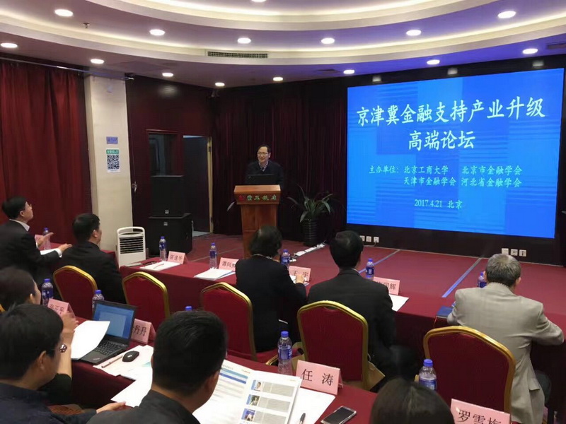 4月21日,我校經(jīng)濟(jì)學(xué)院區(qū)域金融工程研究中心與北京市金融學(xué)會、天津市金融學(xué)會、河北省金融學(xué)會等單位聯(lián)合舉辦的“京津冀金融支持產(chǎn)業(yè)升級高端論壇暨第二屆京津冀經(jīng)濟(jì)與金融創(chuàng)新發(fā)展論壇”召開。來自我校、天津商業(yè)大學(xué)、河北經(jīng)貿(mào)大學(xué)、中國人民大學(xué)等高校,京津冀三地金融學(xué)會、河北省工業(yè)和信息化廳、人民銀行、中國銀行、農(nóng)業(yè)銀行等政府部門和業(yè)界的專家學(xué)者約150余人參加了會議。會議分為項(xiàng)目推介、主旨演講、互動討論等三個(gè)主要環(huán)節(jié),與會者們圍繞京津冀區(qū)域發(fā)展的重要經(jīng)濟(jì)與金融問題展開了熱烈研討。
