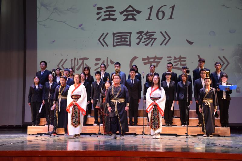 本次比賽共分為碧血丹心、錚錚鐵骨、山河贊歌三個(gè)篇章。比賽在一首《將進(jìn)酒》的誦讀中拉開帷幕,學(xué)生意氣風(fēng)發(fā)、氣勢磅礴的朗誦,贏得在場觀眾掌聲陣陣;《憶往昔歲月,看今朝少年》又把師生帶回革命的年代,感受頑強(qiáng)不屈的民族之魂;《祖國啊!我親愛的祖國》大氣磅礴,引得在場觀眾斗志昂揚(yáng)。從深情款款的《我用殘損的手掌》到慷慨激昂的《我愛你中國》;從熱血沸騰的《精忠報(bào)國》到豪情滿懷的《我驕傲,我是中國人》,同學(xué)們將對歷史的緬懷,對先輩的禮贊,對祖國的歌唱,對和平的呼喚,化成口中抑揚(yáng)頓挫的篇章。壓軸出場的《漁舟唱晚》古箏表演,使老師和同學(xué)們從激動的心情中漸漸平復(fù)下來。舞臺上的朗誦者或激昂、或深沉,或熱情洋溢、或質(zhì)樸真誠。各班精心的編排,整齊的動作,響亮的誦讀聲將商院學(xué)子的風(fēng)采展現(xiàn)得淋漓盡致。