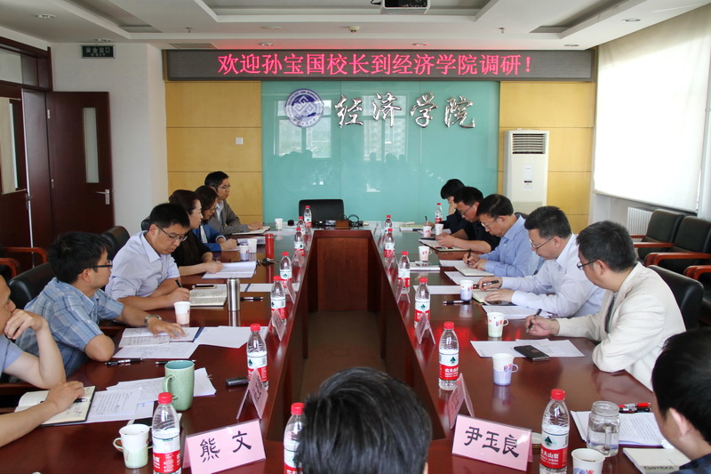 5月5日,校長孫寶國到經(jīng)濟學(xué)院調(diào)研,就學(xué)院發(fā)展和學(xué)科建設(shè)等問題與學(xué)院領(lǐng)導(dǎo)班子成員和系主任進行交流座談,學(xué)校辦公室主任王小藝陪同。調(diào)研會由經(jīng)濟學(xué)院黨委書記張正平主持。