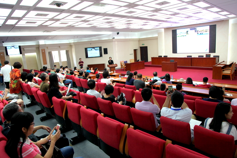 上午10:00,學校在文科實踐中心模擬法庭舉辦2017年北京工商大學在京招生計劃、高考招生政策發布會。副校長張耘代表學校對前來參加活動的考生及家長表示熱烈地歡迎,向大家簡要介紹了學校的基本情況,特別是近年來在學科專業建設、教育教學改革、科學研究等方面取得的成績及學校未來發展目標。她希望廣大考生及家長多關注北京工商大學,積極報考北京工商大學。教務處副處長兼教育研究中心主任、學校招生辦主任施楓就2017年學校在京招生計劃、招生政策、錄取規則、志愿填報等作了詳細說明,耐心細致地解答了考生及家長關心的問題。