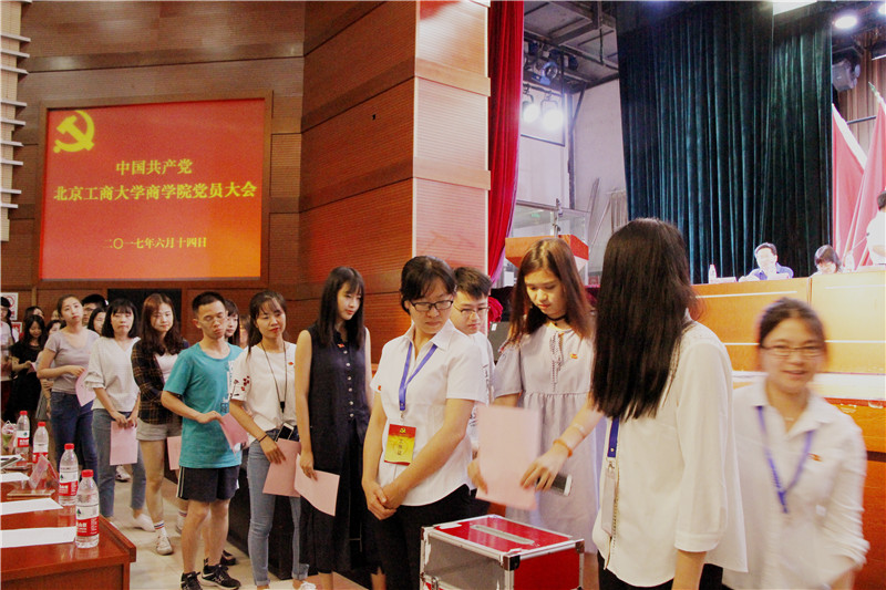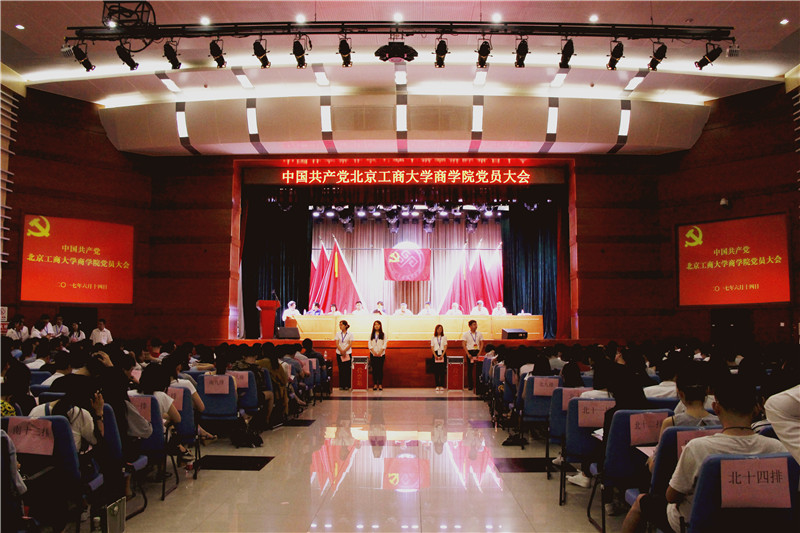 大會在莊嚴的國歌聲中拉開帷幕。學校黨委組織部副部長富斌宣讀了學校黨委《關于同意中共北京工商大學商學院召開黨員大會的批復》。