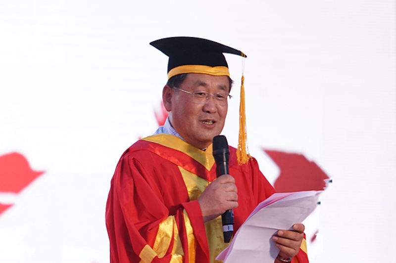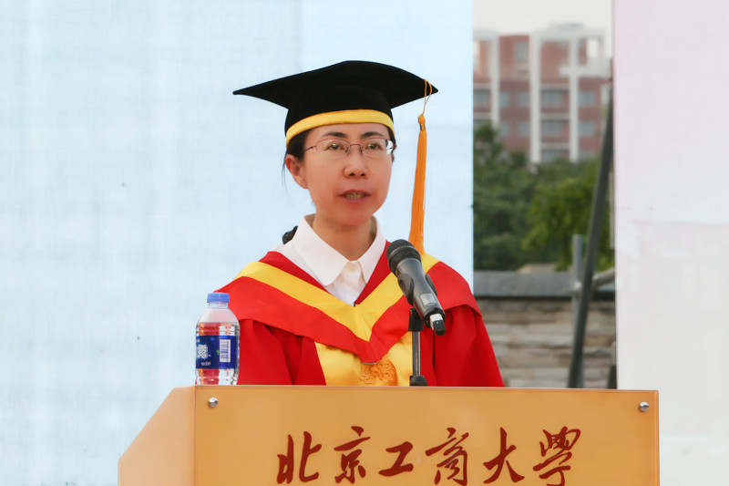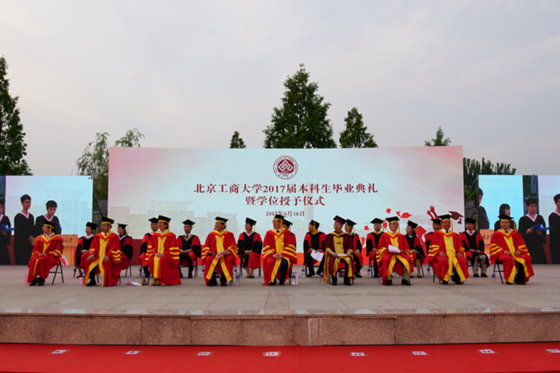 校長孫寶國院士在發言中代表學校黨政向2017屆畢業生表示熱烈的祝賀,向為同學們成長而辛勤耕耘的全體教職員工表示衷心的感謝,向前來參加畢業典禮的各位家長和朋友們表示誠摯的歡迎。孫校長談到,2017屆本科畢業生是北工商歷史上國際化基礎最好、能力最高的一屆,是北工商一流大學征程中具有里程碑意義的一屆,第一次突破了學校本科人才培養質量“369”標志性指標中 “6” 的指標;今年考研和出國深造的學生數是學校歷屆畢業生中最高的。畢業生中有28人次獲得國家獎學金,625人次在各類競賽中獲得市級以上榮譽,93人次獲得“校園之星”的榮譽稱號,24人被評為“北京市三好學生”,138人被評為“北京市優秀畢業生”,32名同學投筆從戎。孫校長希望同學們要有“生當為人杰”的志向,努力學習和工作;同時要懷感恩之心,在工作和生活中懂得回報,懂得禮讓,學會謙讓,做到忍讓。孫校長談到,國家給年青人搭建了廣闊的舞臺,希望大家勇挑重擔,施展才華,勇敢追夢。最后,孫校長以一首包含北工商校訓的詩寄語畢業生“三千學子踏征程,工商校訓伴君行,求真立德修心性,勤奮創新建奇功”,希望2017屆學子在新的崗位奮發向上,建功立業,創造新的輝煌,成為北工商的驕傲!