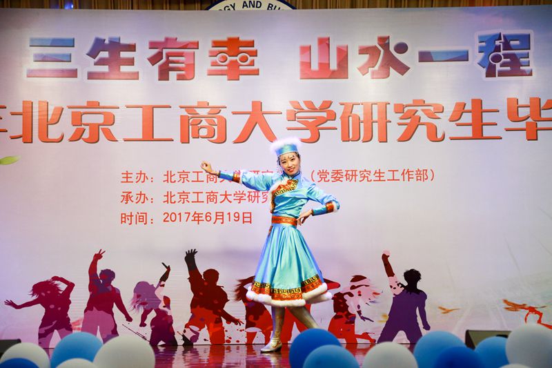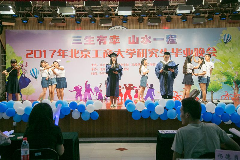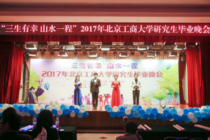 晚會展現(xiàn)了研究生們豐富多彩的課余生活,表達了畢業(yè)生對母校的不舍與眷戀,飽含母校和導(dǎo)師對畢業(yè)生的祝福與期盼。三生有幸,在北工商遇到你,山水一程,最美的年華和你一起走過,衷心祝愿2017屆畢業(yè)研究生前程似錦,一切順利。