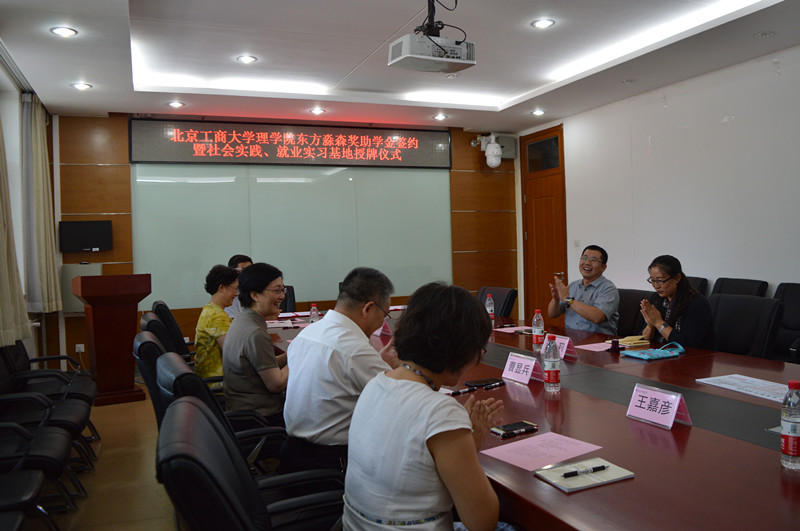 6月26日,理學(xué)院舉行東方淼森獎(jiǎng)助學(xué)金簽約暨社會(huì)實(shí)踐、就業(yè)實(shí)習(xí)基地授牌儀式。學(xué)校副校長(zhǎng)張?jiān)拧⒈本〇|方淼森生物科技有限公司總經(jīng)理邱顯榮出席儀式,北京東方淼森生物科技有限公司綜合管理中心經(jīng)理李莉,我校校友會(huì)辦公室主任呂東燕、理學(xué)院黨委書記祝鈞、副書記王嘉彥參加了儀式。活動(dòng)由理學(xué)院院長(zhǎng)曹顯兵主持。