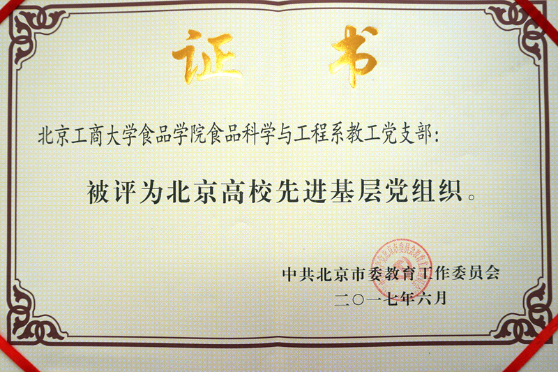 我校食品學院食品科學與工程系教工黨支部被授予“北京高校先進基層黨組織”稱號,理學院物理系主任陳曉白教授被授予“北京高校優秀共產黨員”稱號。北京高校共評選出30個先進基層黨組織、99名優秀共產黨員、30名優秀黨務工作者。