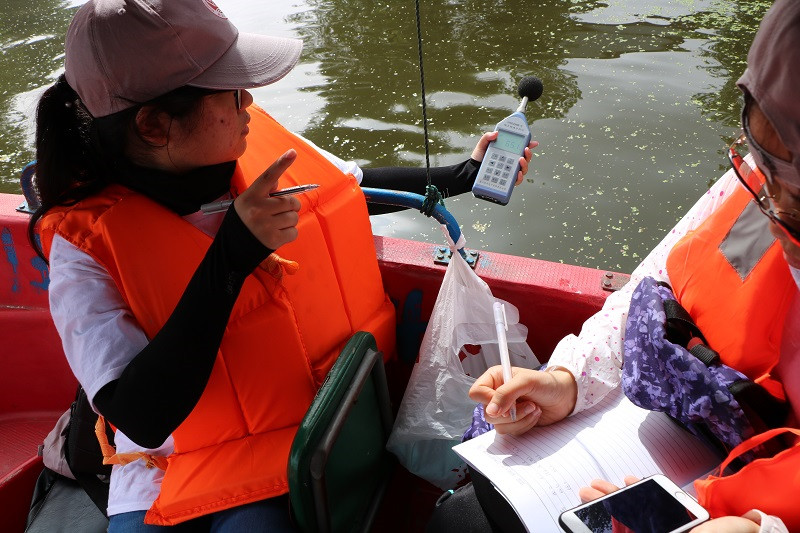 食品學院實踐團16名團員在環境科學與工程系實驗室主任董黎明老師和食品學院團總支書記劉晶老師的帶領下,懷著飽滿的熱情,先到白洋淀北淀地區的12個國控和省控監測點對生態、水質、大氣、噪聲進行數據測量和采樣。在強烈的陽光下,小船停停走走,實踐團員們每到一處便認真的測量數據、采取樣本,這讓大家對白洋淀有了更為深入的認識,逐漸將課堂所學知識應用到實踐中。