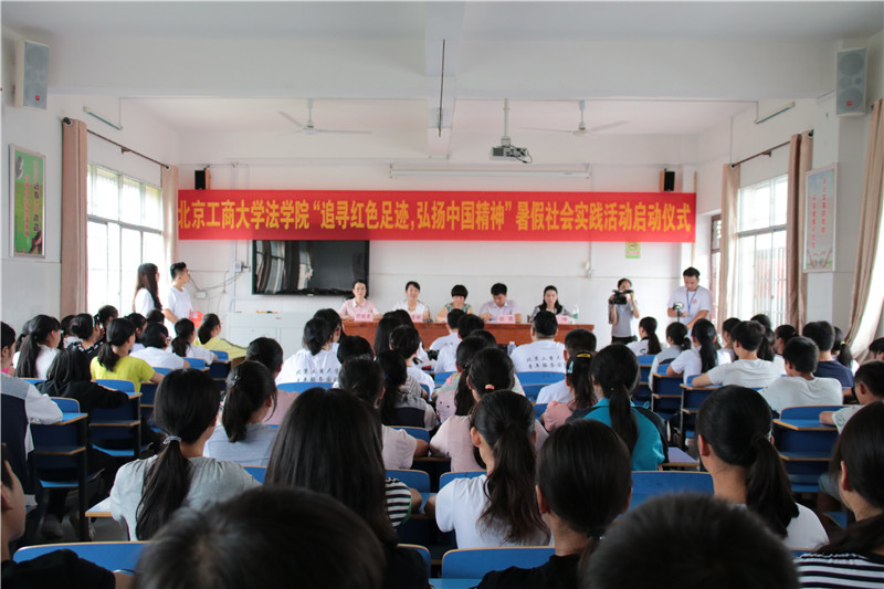 7月8日上午,法學院中國精神學習宣講實踐團在廣西桂林全州縣枧塘中學舉行了暑假社會實踐活動啟動儀式。法學院黨委書記文四英、共青團桂林市委副書記張圓、全州縣副縣長蔣雪嬌、全州縣枧塘鎮黨委書記王崢出席活動,實踐團的成員及枧塘中學的師生參加儀式,活動由共青團全州縣委書記鄧麗君主持。