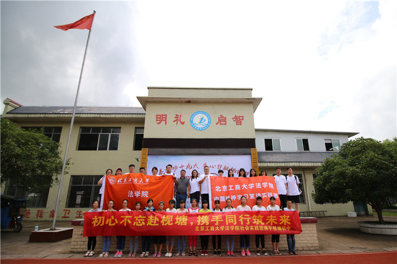 儀式上枧塘鎮黨委書記王崢和全州縣副縣長蔣雪嬌分別致歡迎詞,他們對于本次活動表達了高度贊揚與衷心感謝,并表示在這個洪水災后重建的關鍵時刻,實踐團的到來意義非凡,此次活動對于法律普及與文化發展有著十分重要的作用,同時希望實踐團的同學能有更多的收獲。法學院黨委書記文四英感謝桂林團市委、全州縣政府等多方對于此次活動的大力支持,希望實踐團同學們能盡自己的所學所能,在社會實踐活動中收獲和成長。實踐團的成員立足廣西實際,結合具體實情,從“愛國主義”“傳統文化”“法治中國”“一帶一路”四個方面,用風趣幽默的語言向枧塘中學的孩子們更好的傳遞了中國精神,并結合當地特點,進行了普法宣講,活動受到了與會師生的積極響應和認可。